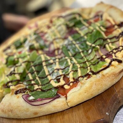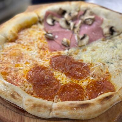 Тесто для пиццы, колбаса Пеперони, сыр Моцарелла, соус томатный (30 см)