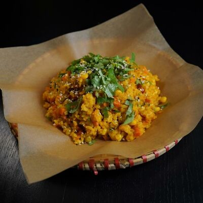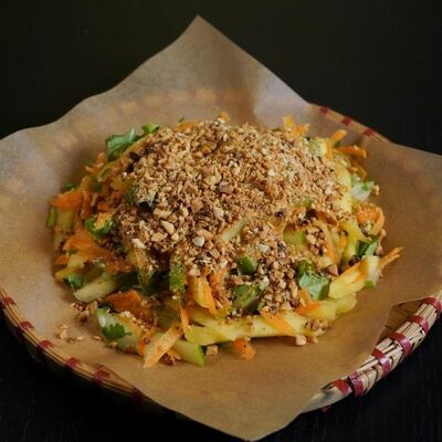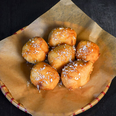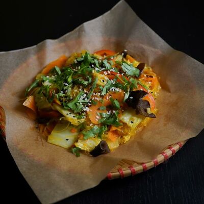 Вьетнамская паровая булочка с начинкой из куриного фарша, фунчозы, грибов муэр, вареного куриного яйца, с добавлением специй (черный перец, соль). В составе теста - мука пшеничная, вода, дрожжи сухие, молоко, разрыхлитель, растительное масло, сахар