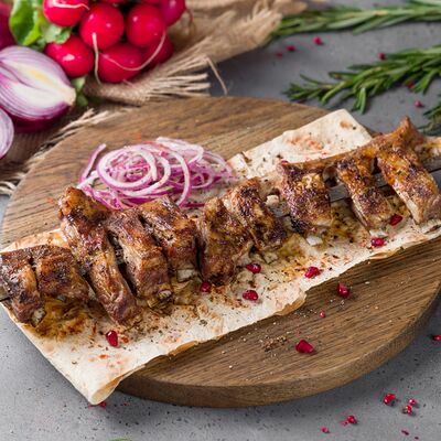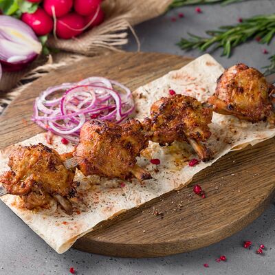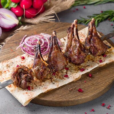 Бараньи ребра, маринад: черный перец, паприка, лук