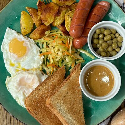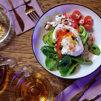 Рис, красная капуста, яйцо куриное, кукуруза, лук, тунец