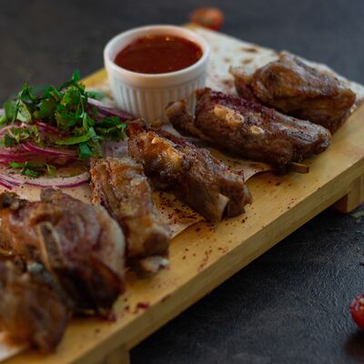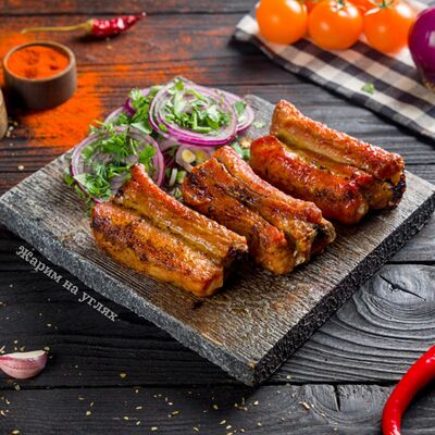 Баранья корейка в фирменном маринаде, приготовленная на углях