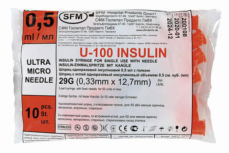 Шприц СФМ инсулин 3х комп U100 29G 0,33х12,7 0,5мл №10 доставка