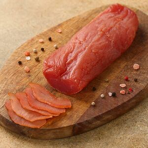 Слои мяса чередуются с нежным шпиком, а этот чудесный, копченый аромат! Грудинка Царская – отменный деликатес, который можно использовать для бутербродов или в качестве мясной закуски на праздничном столе. Также превосходно подходит для первых блюд, например, гороховых или фасолевых супов, пасты в стиле Карбонара и салатов, которым этот деликатес «отдаст» свой восхитительный копченый аромат. Грудинка произведена по Стандарту качества МясновЪ: в составе только разрешенные пищевые добавки в минимальном количестве.