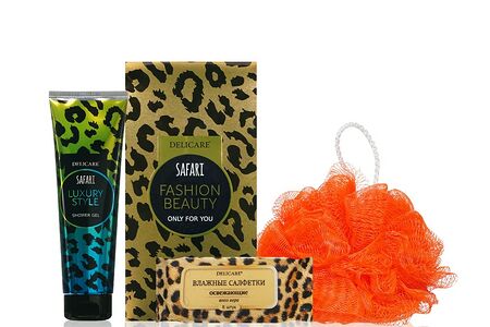 Женский подарочный набор Delicare Safari ( гель для душа " Luxury Style " 300мл + влажные салфетки " освежающие " 8шт + мочалка для тела Aqua Joy ) доставка