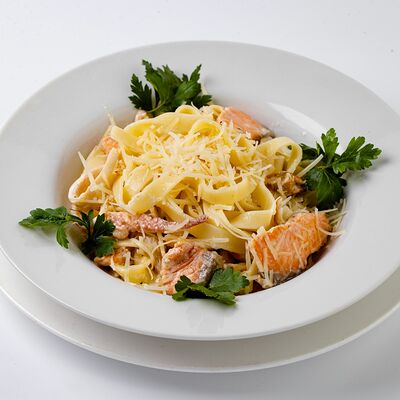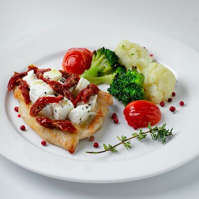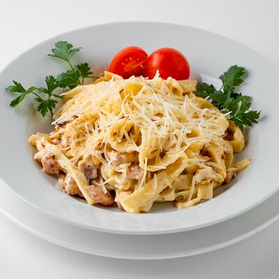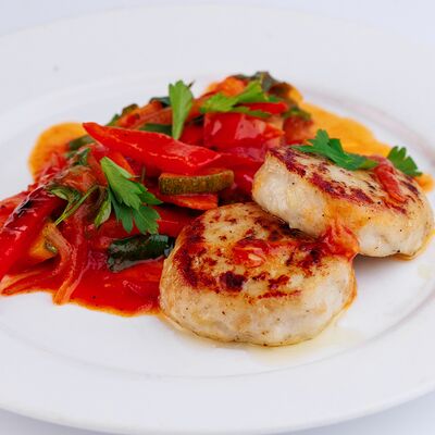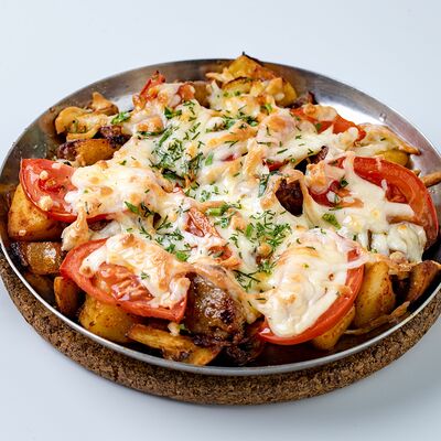 Шампиньоны, помидоры, ветчина, сыр моцарелла, соус неаполь. Размер пиццы на выбор