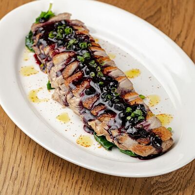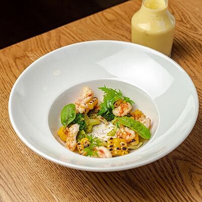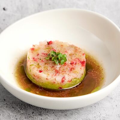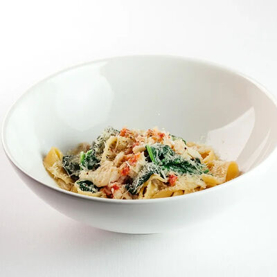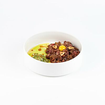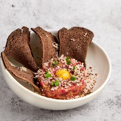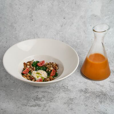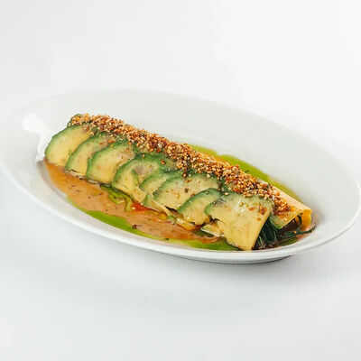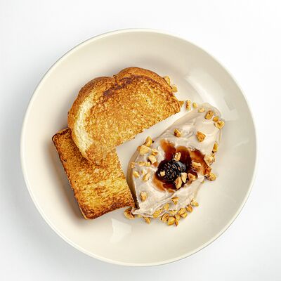 Классические блины (молоко, яйцо, мука, сахар) Крем йогуртовый с клубникой (сливки, креметте, йогурт, шантипак, сахар, свежая клубника) Украшается соленой карамелью, фундуком и лепестками миндаля
