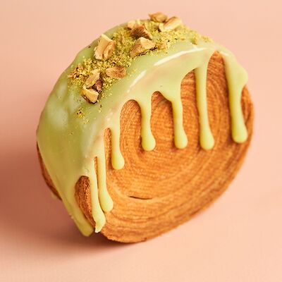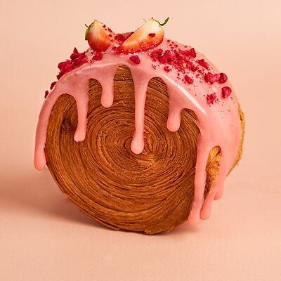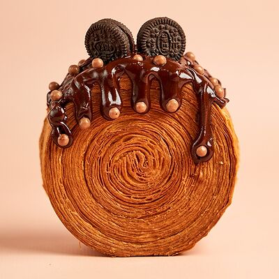 Круглый слоенный круассан с начинкой из шоколадно-фундучной пасты, украшен шоколадным ганашем и печеньем Орео