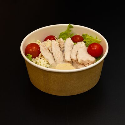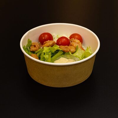 Маринованные креветки, салат-латук, соус цезарь, чесночные гренки, пармезан, томаты черри