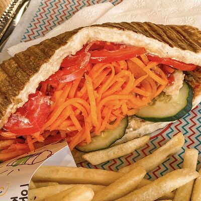 Капуста, картофель, кетчуп, лаваш маленький, лук репчатый, морковь по корейски, огурцы, помидоры, соус, шаурма п/ф (свинина)
