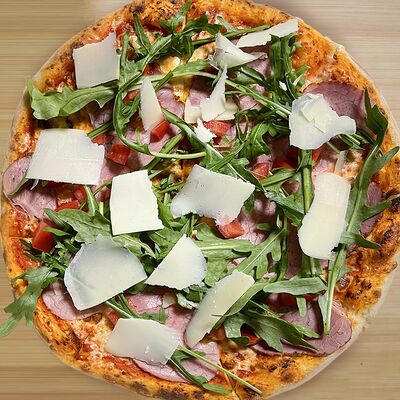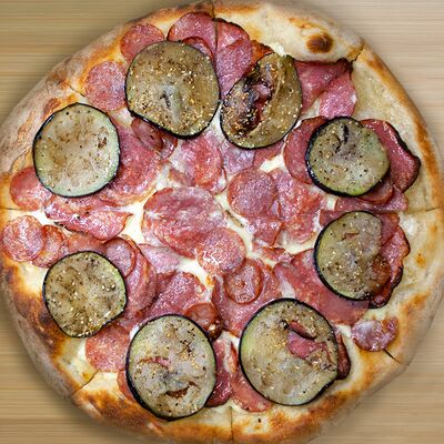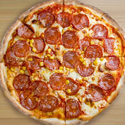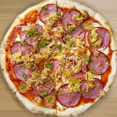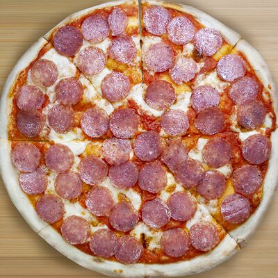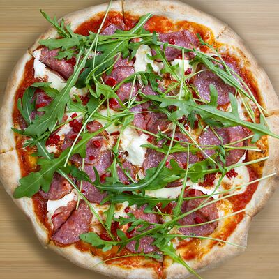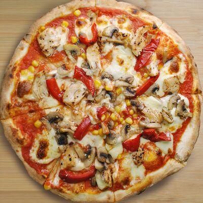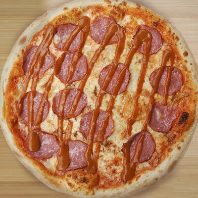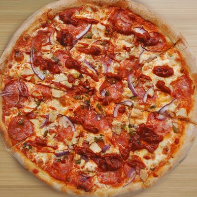 Томатный соус, моцарелла, куриное филе, салями, красный лук, халапеньо (30 см)