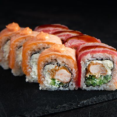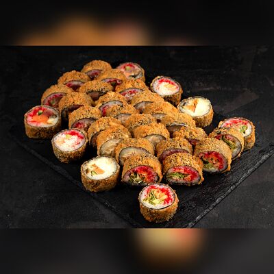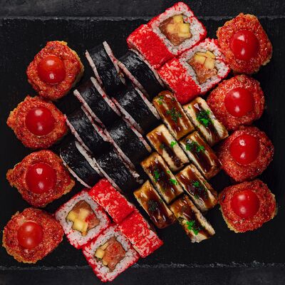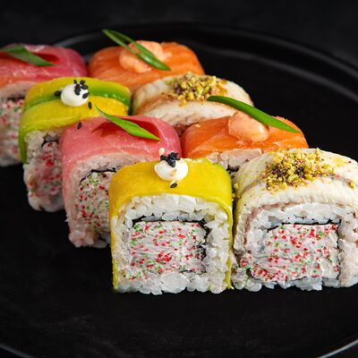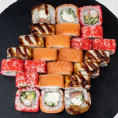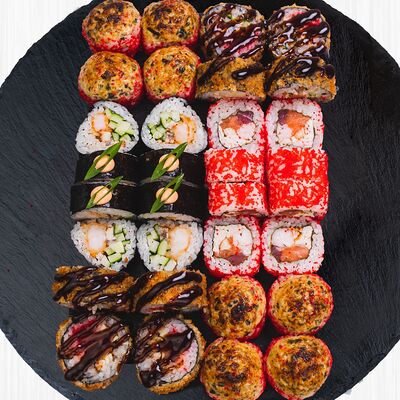 Нори, рис, краб, авокадо, огурец, майонез, масаго