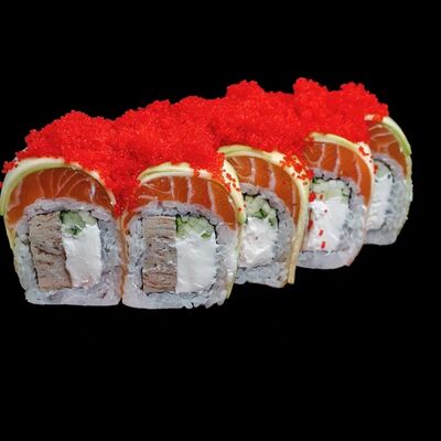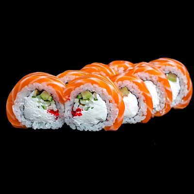Лосось, сыр, рис, черный кунжут, нори