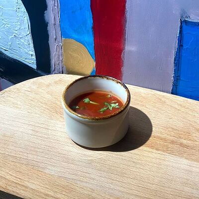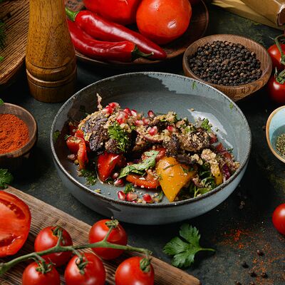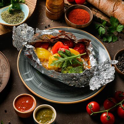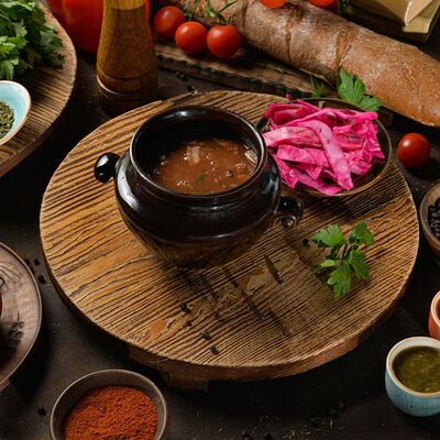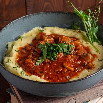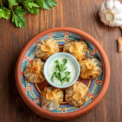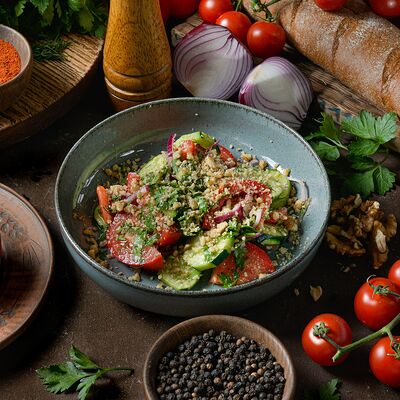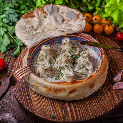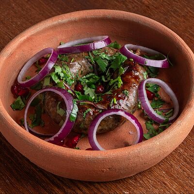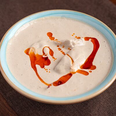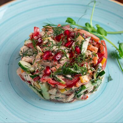 Холодная закуска из куриной грудки в соусе с грецкими орехами, чесноком, на основе куриного бульона