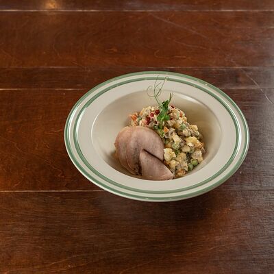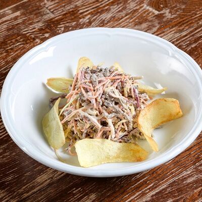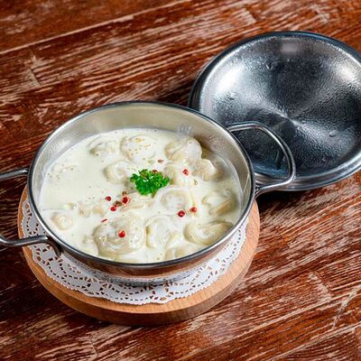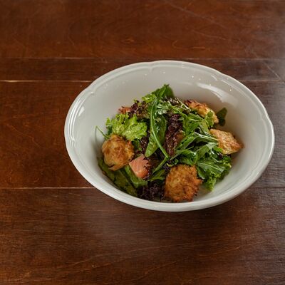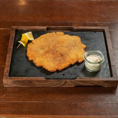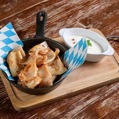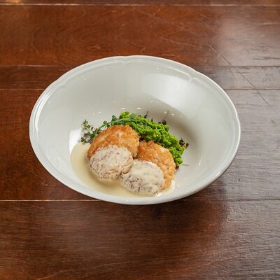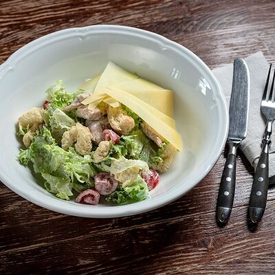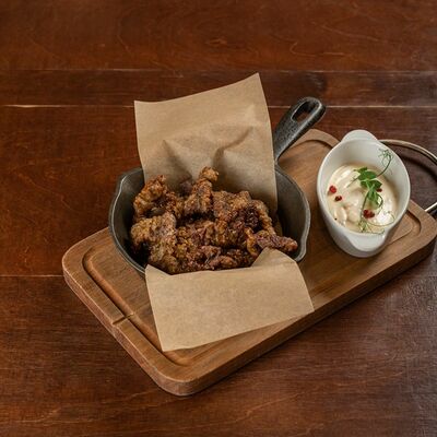 Куриное филе, соль, перец, кляр, соус сырный, зелень