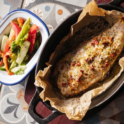 Зелёный салат с панчеттой и анчоусами доставка