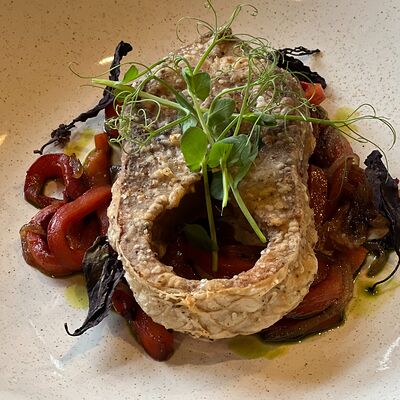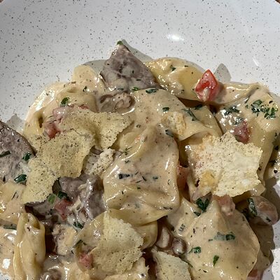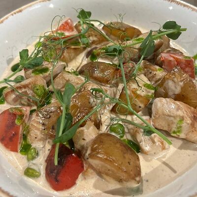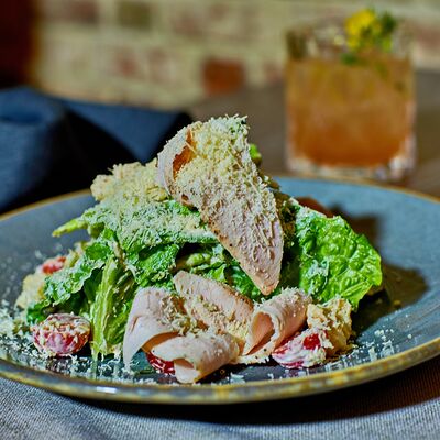 Нежное куриное филе, микс салатов, пармезан, помидоры, сухарики, заправка из тунца