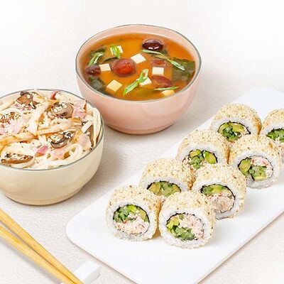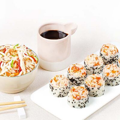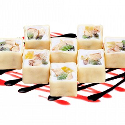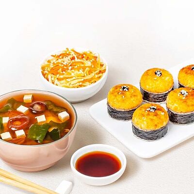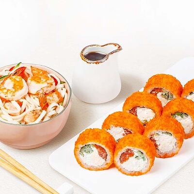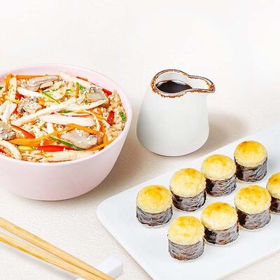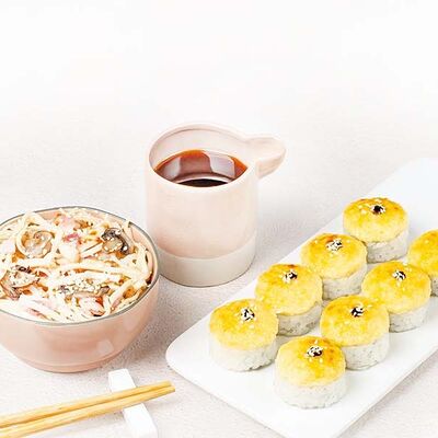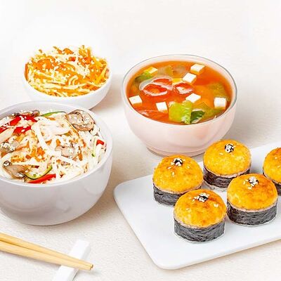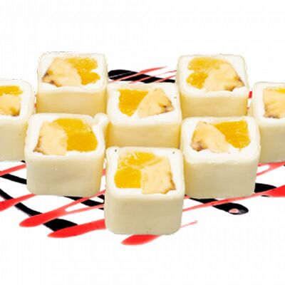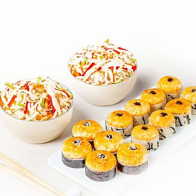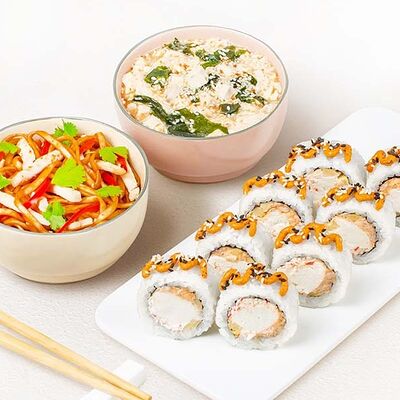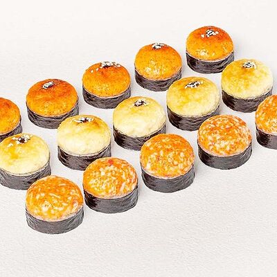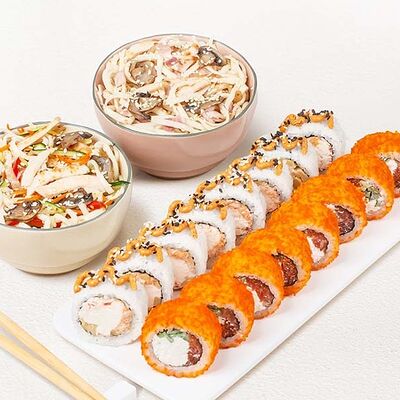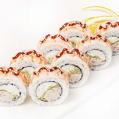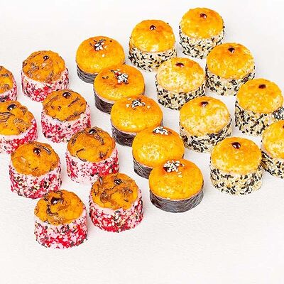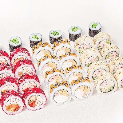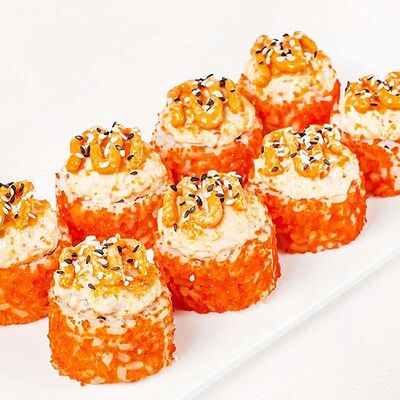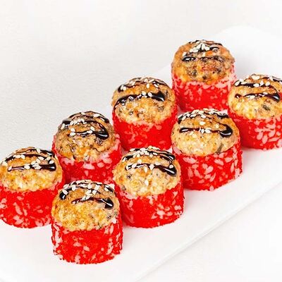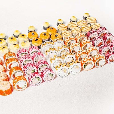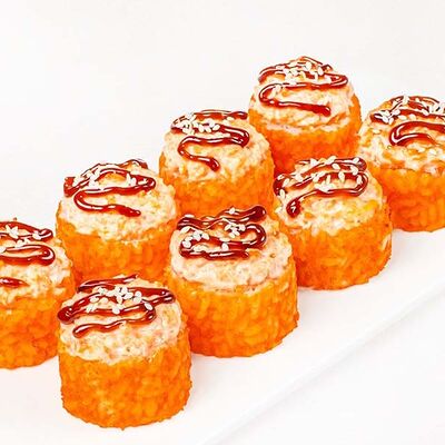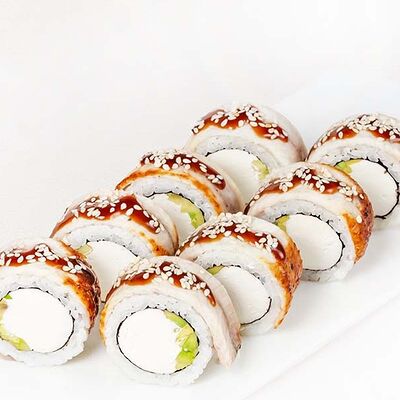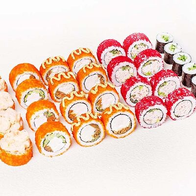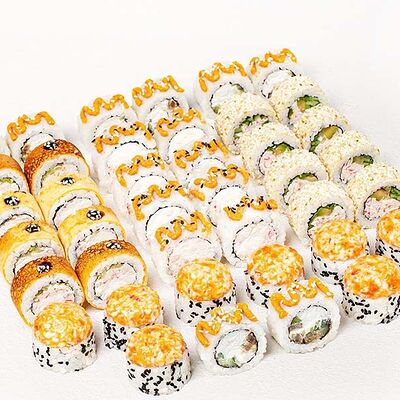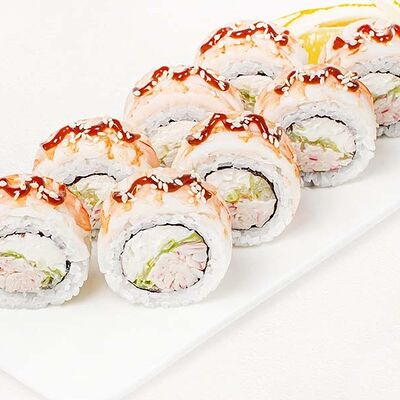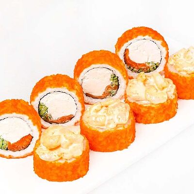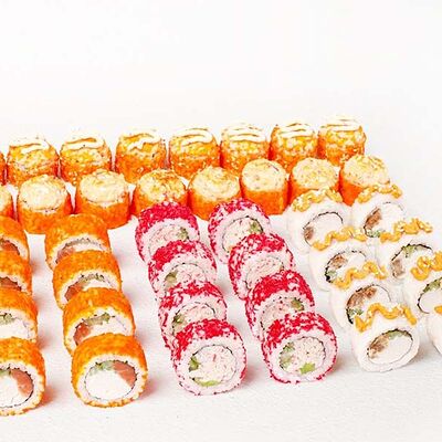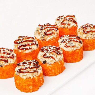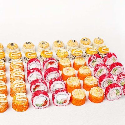 Запеч. Ролл Медовая креветка, запеч. Ролл Сырный, запеч. Ролл Хоккайдо, запеч. Ролл Лосось унаги, ролл Азия Чикен, ролл Калифорния в масаго, ролл Окунь Тай, ролл Сэнсей, ролл Креветка Фреш