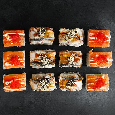 Ролл Калифорния, ролл Калифорния с креветкой, ролл Калифорния с лососем (18 шт.)