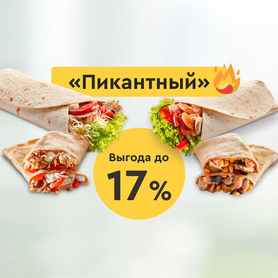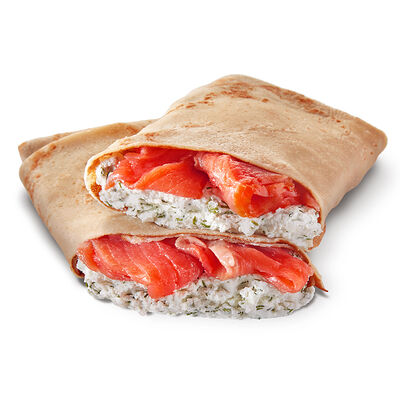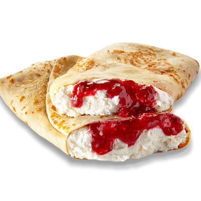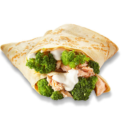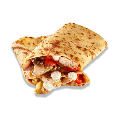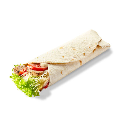 Поджаренное куриное филе со свежим томатом, сыром и хрустящим салатом Айсберг в фирменном соусе цезарь. Наш хит уже 15 лет! Состав: блин на бездрожжевом тесте, жареное куриное филе, свежий томат, салат Айсберг, сыр, соус цезарь