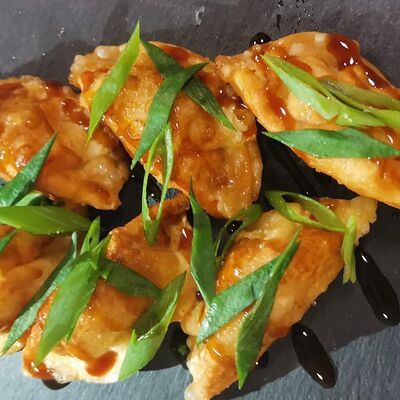Тесто, креветочный фарш, соевый соус, лук зеленый (6 шт.)