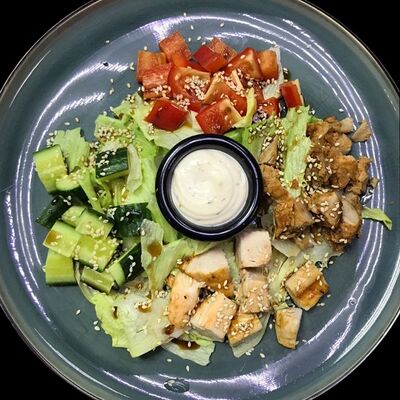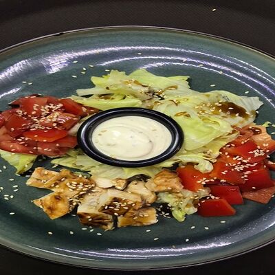 Соус цезарь, цыпленок, спелые томаты, пармезан и моцарелла, прованские травы