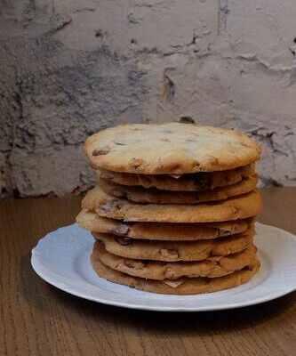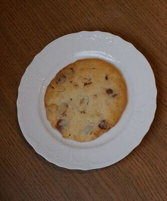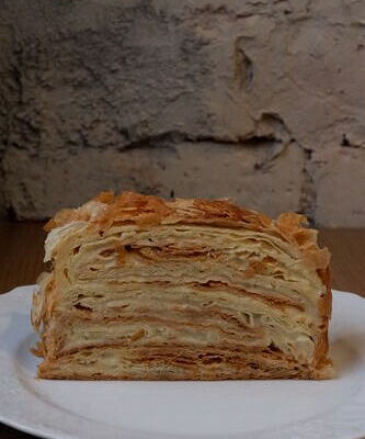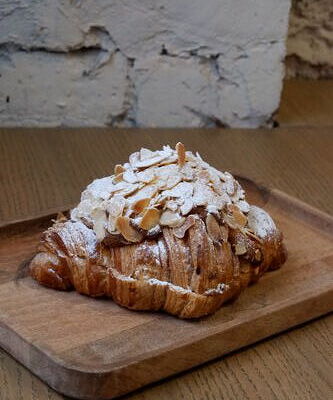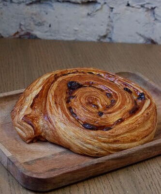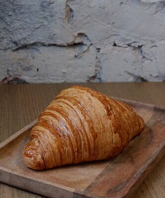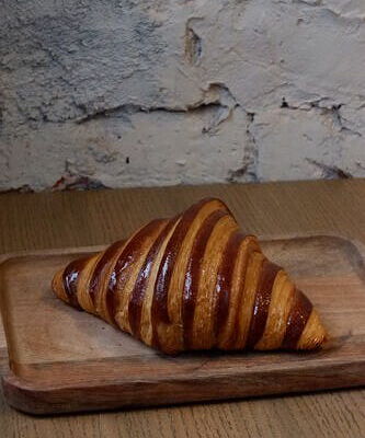 Круассан на жирном сливочном масле с шоколадным кремю внутри. Состав: мука пшеничная высшего сорта, вода, молоко коровье, сахар, соль, свежие дрожжи, сливочное масло 84%, сливочное масло 82,5%, темный шоколад, молочный шоколад, сливки жирные 33%, яичный желток, крахмал кукурузный, пектин