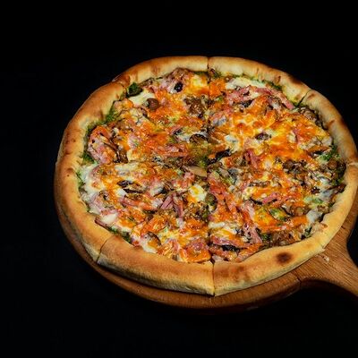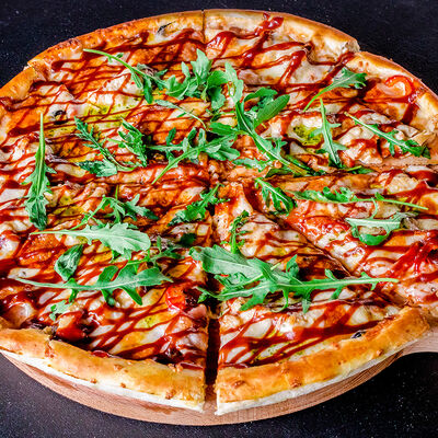 Барбекю, цезарь, ветчина и грибы, три сыра (30 см)