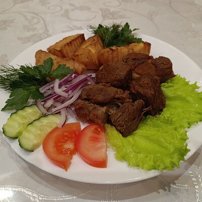 Говяжье мясо, марковь, лук, нут, рус
