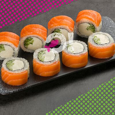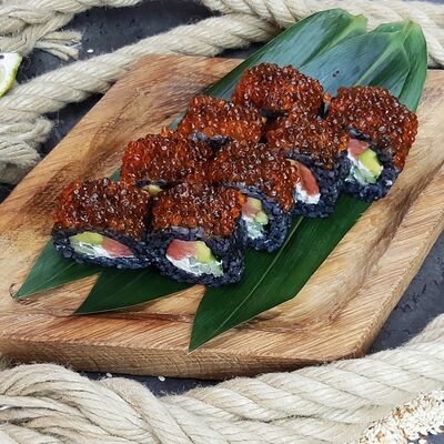 Ролл со сливочным сыром, хрустящим огурчиком и кунжутом
