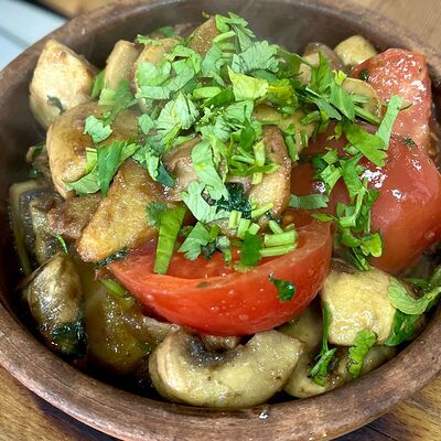 Тесто, начинка (вешенки, шампиньоны, сливки), кинза, грузинские специи (3 шт.)