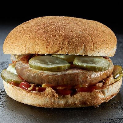 Хрустящий французский багет с соусами и пикантной колбаской из свинины и говядины, нотками чили и паприки