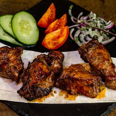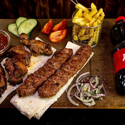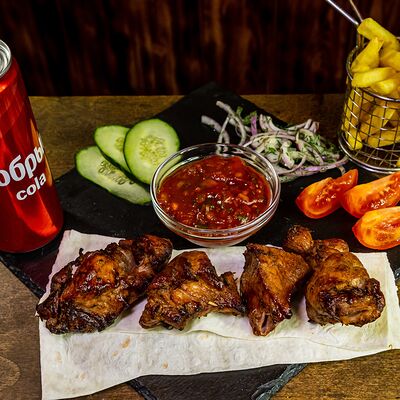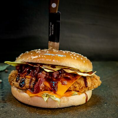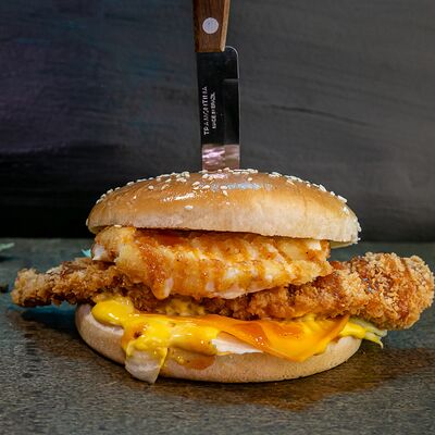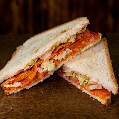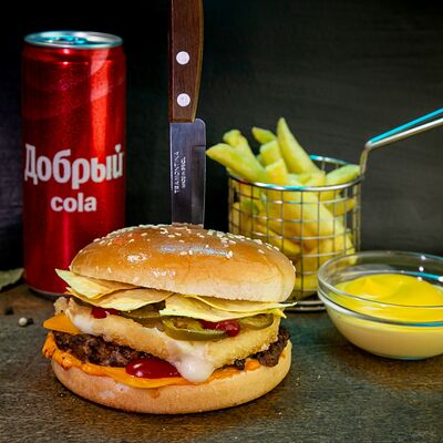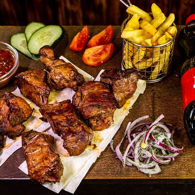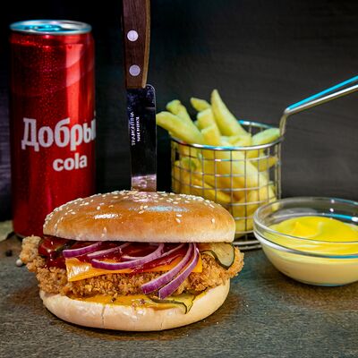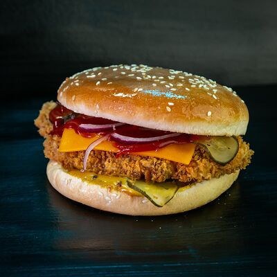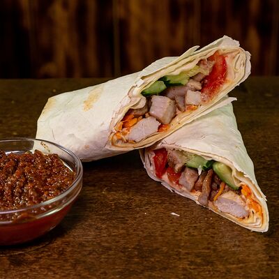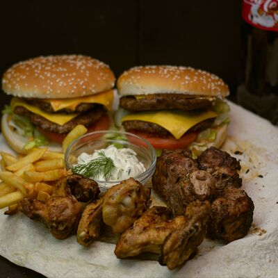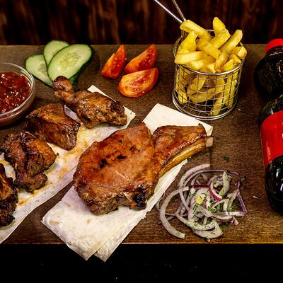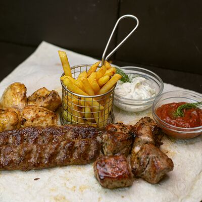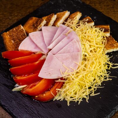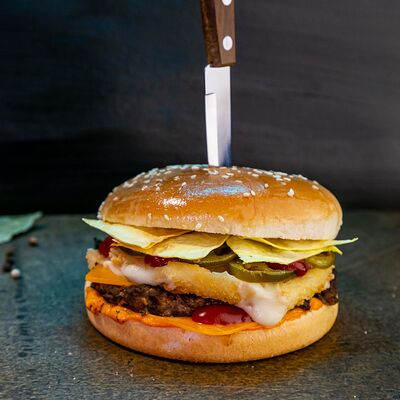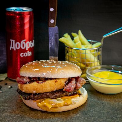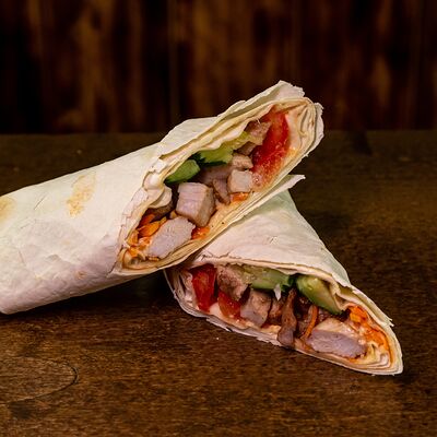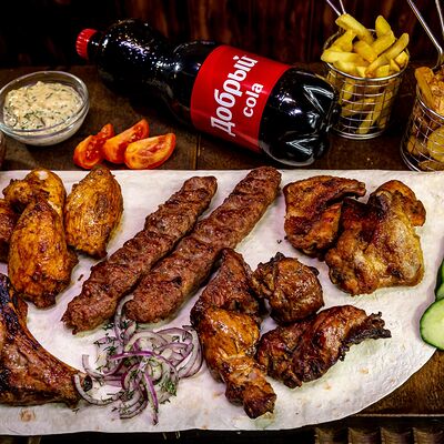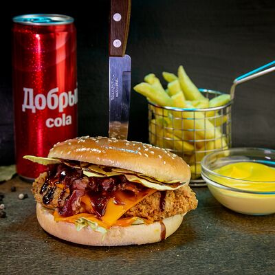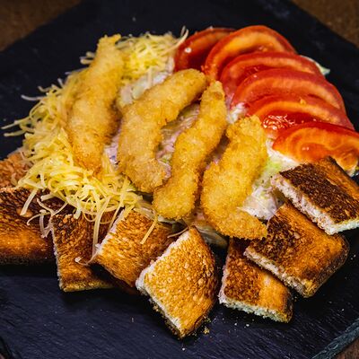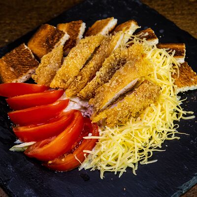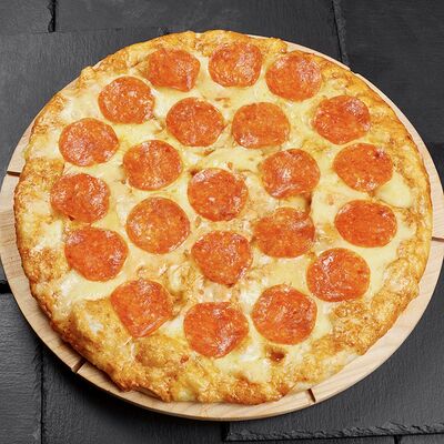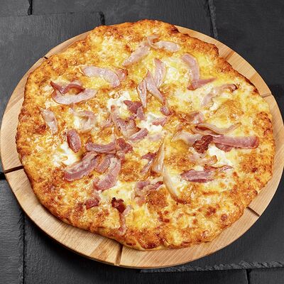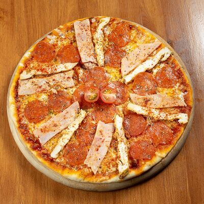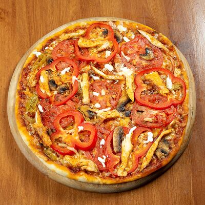 Пицца-соус, томаты, куриное филе, говядина, бекон, сыр моцарелла, перец болгарский, шампиньоны (30 см)