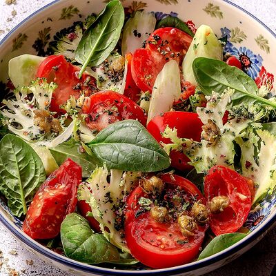 Овощной салат с томатами, огурцом и зеленью доставка