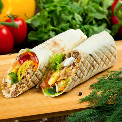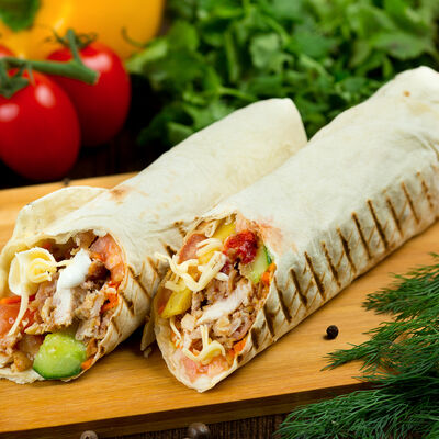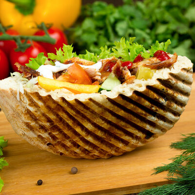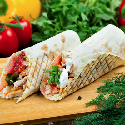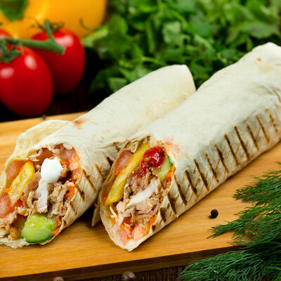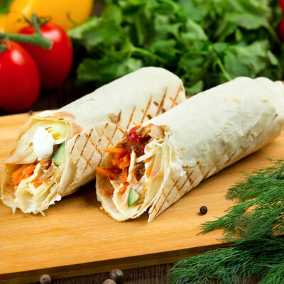 Курица, помидор, огурец, капуста, сыр чеддер, морковь, фирменный соус, лаваш