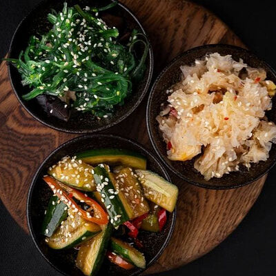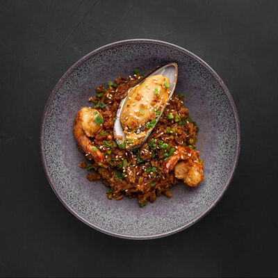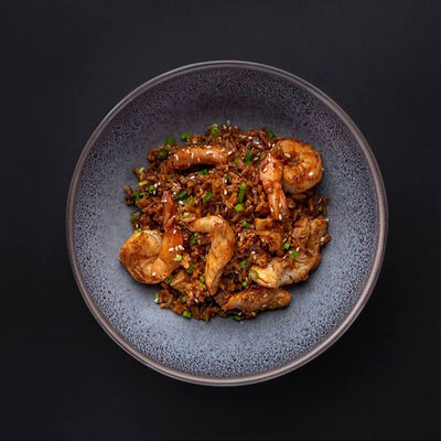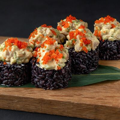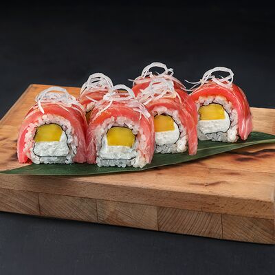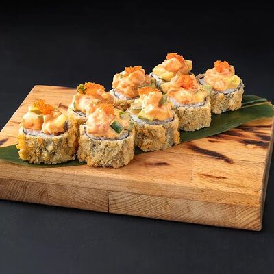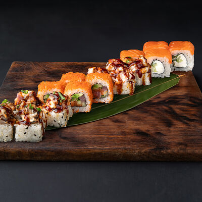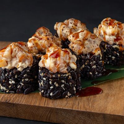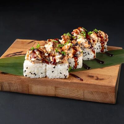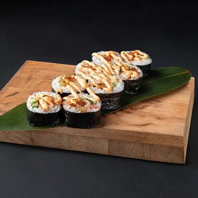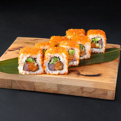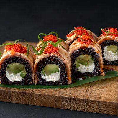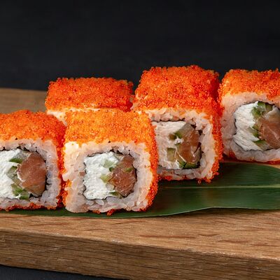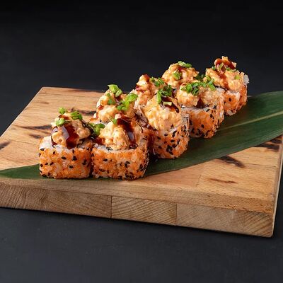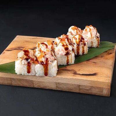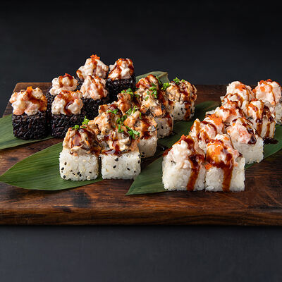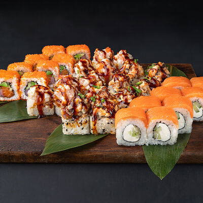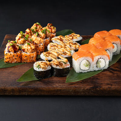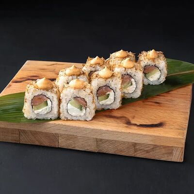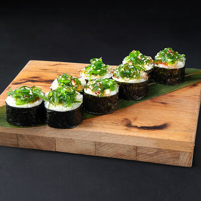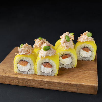 Рис, нори, сыр, филе лосося, бобы эдамаме, краб
