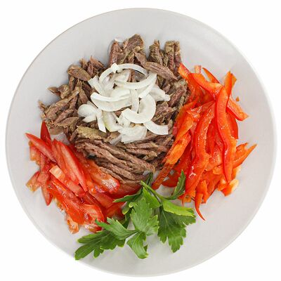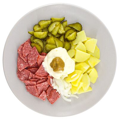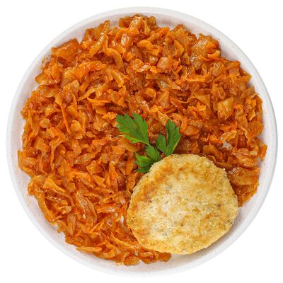 Капуста тушеная, сосиски, соль, перец