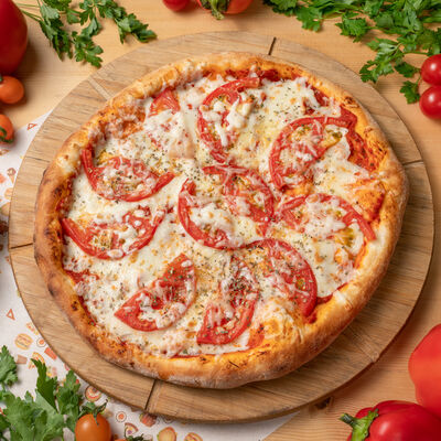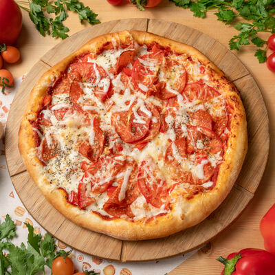 Грибы, сыр моцарелла, томат. Размер на выбор