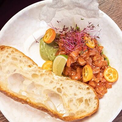 Свежая устрица с лимоном и соусом