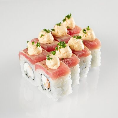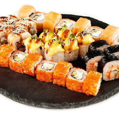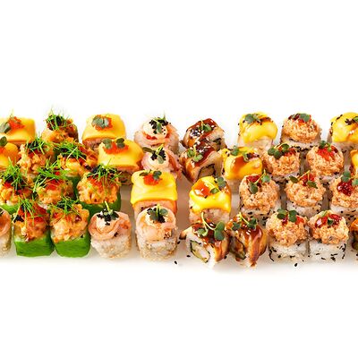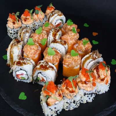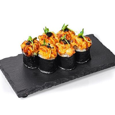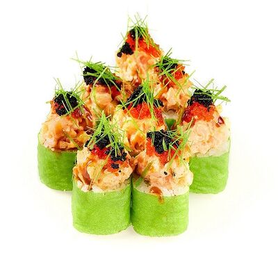 Рис, нори, угорь, креветка, огурец, авокадо, кунжут, микротрава, соус унаги (8 шт.)