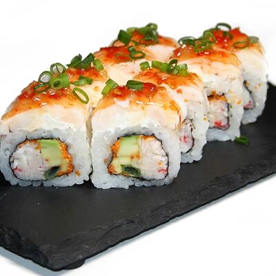 Снежный краб, рис, водоросли нори, огурец, авокадо, майонез, тобико (6 шт.)