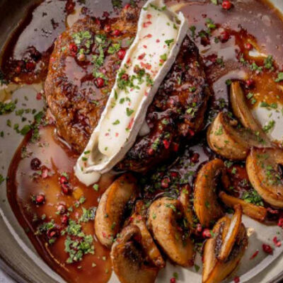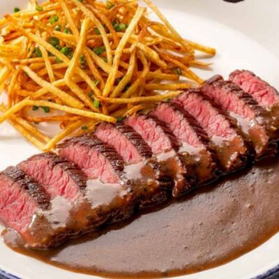 Жареный тунец, маринованный в свежей мяте на подиуме из стручковой фасоли с ореховым соусом