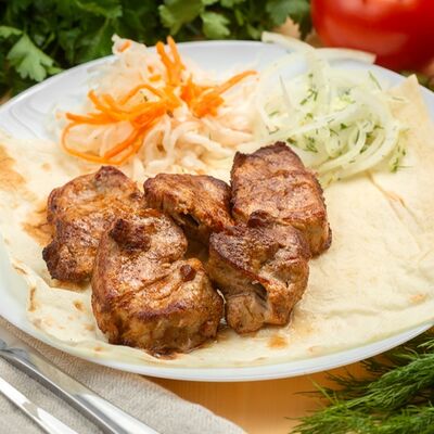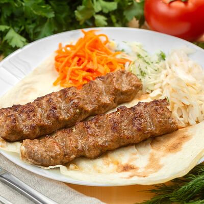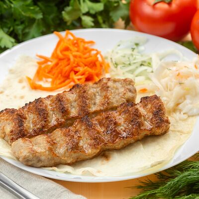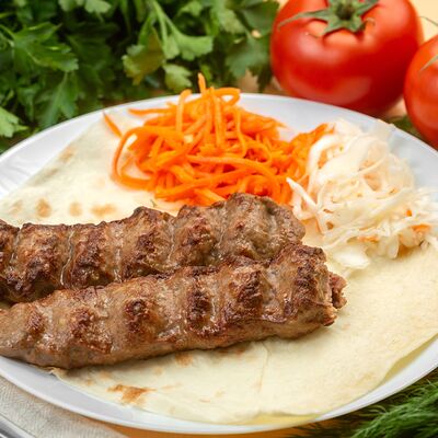Люля кебаб из говядины, лаваш, дополнительный гарнир