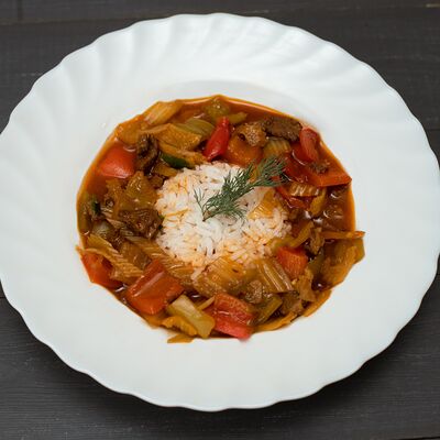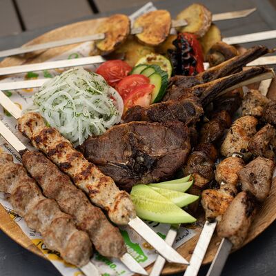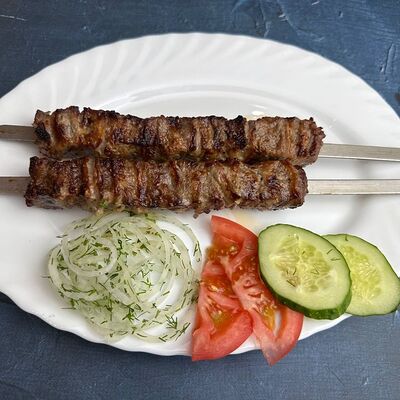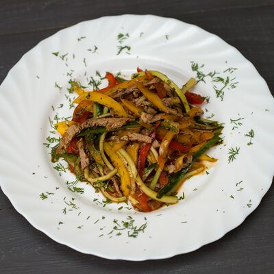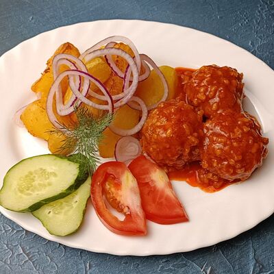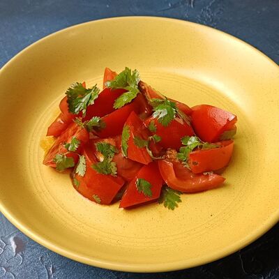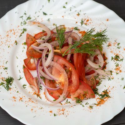 Огурцы, помидоры, лук красный, зелень, лимон, сыр чанах