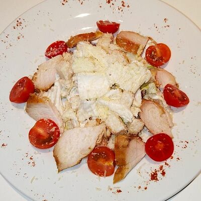 Креветки, ананасы, лук жареный, сыр моцарелла, соус (размер на выбор)