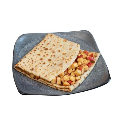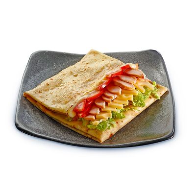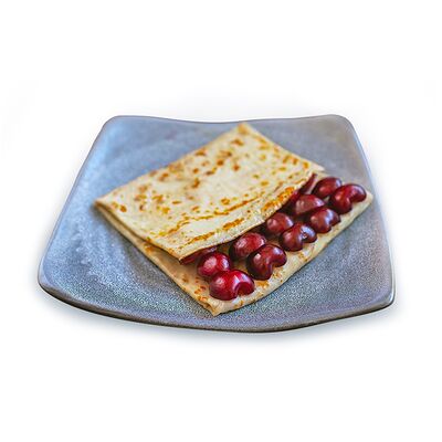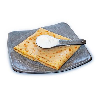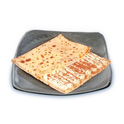 Блин (молоко, сахар, соль, куриное яйцо, сода, подсолнечное масло), сливочное масло, нежный крем-чиз и какао