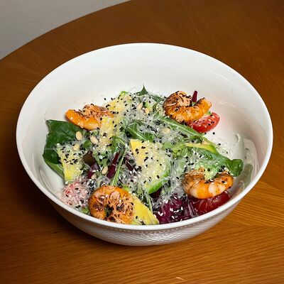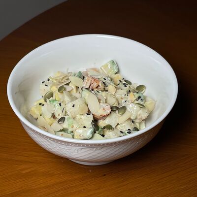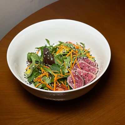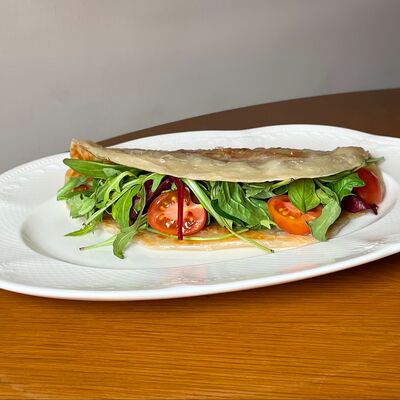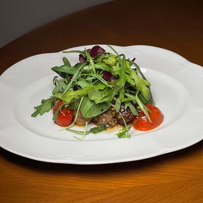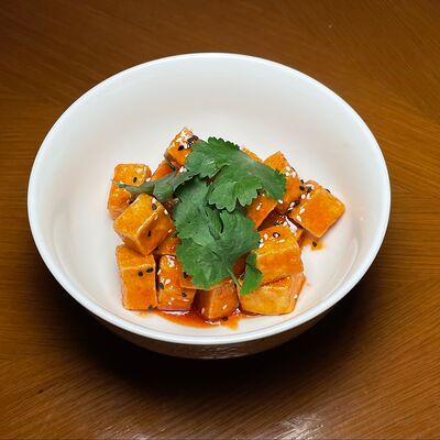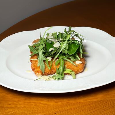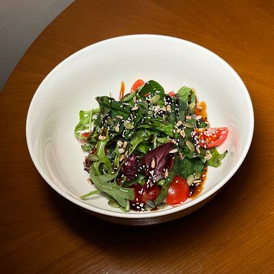 Моцарелла, сухари панко, микс-салат, миндаль, соус сладкий чили
