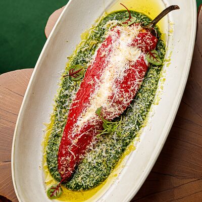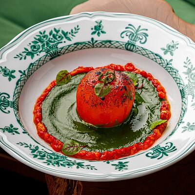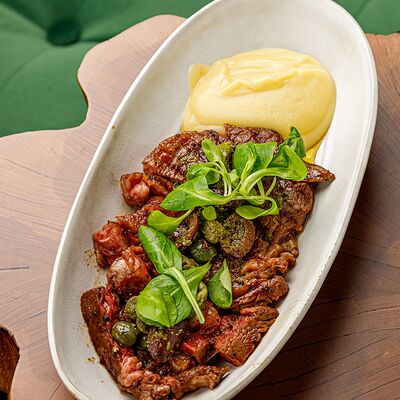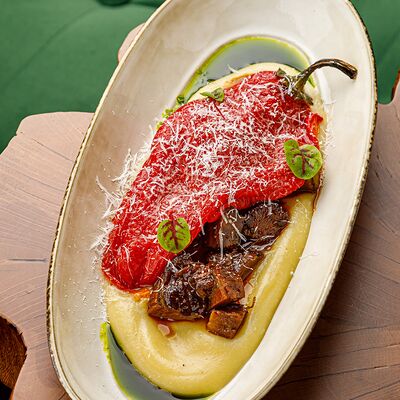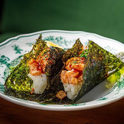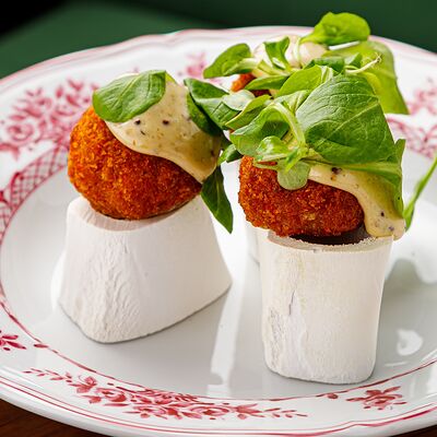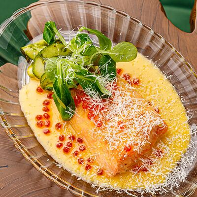Лосось в соусе голландез, сыр пармезан, микс зелени