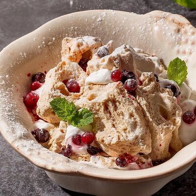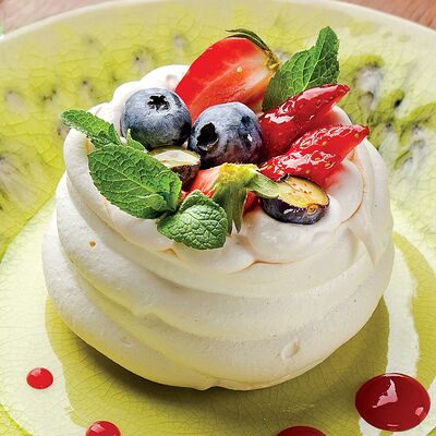 Воздушная меренга со сливочным кремом шантильи, свежей ягодой и мандарином (1 шт.)