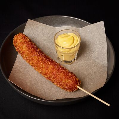 Потрясная сосиска в пушистом кляре. Не забудь выбрать соус