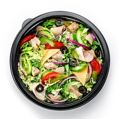 Белый итальянский хлеб, куриные колбаски со свиным шпиком, сыр, все овощи кроме халапеньо, соус барбекю